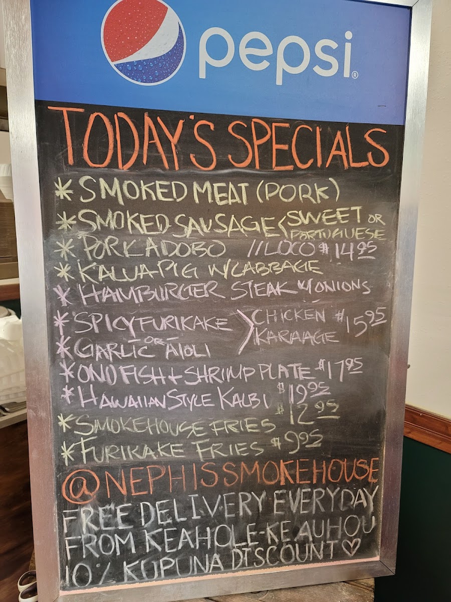 In all, Nephi’s Smokehouse delivers a compact yet compelling menu that celebrates the fusion of Hawaiian tradition and soulful cooking. Whether you’re stopping by for breakfast or in search of a unique dessert, the bold flavors and comforting dishes make this eatery a memorable stop on the Big Island’s food scene.